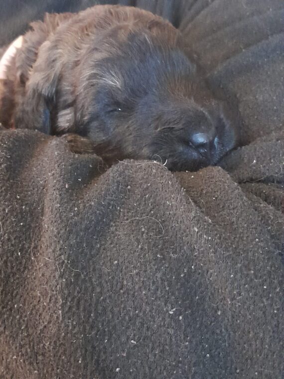 Heute ist der 13. Lebenstag. Der erste Rüde hat das Geburtsgewicht verdoppelt. Ich wiederhole mich gerne, aber die Entwicklung der kleinen Bouvier Welpen verläuft ausgezeichnet. Sie sind in allem den früheren Würfen um etwa 10 % voraus. Wenn man das Titelfoto der Story richtig betrachtet, könnte man evtl schon ein Blinzeln entdecken, d.h. auch hier…