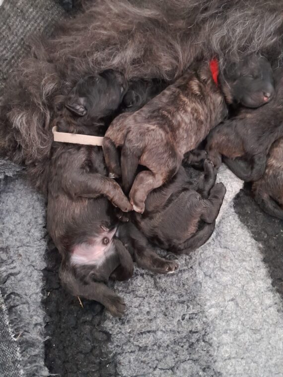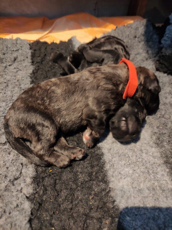 Das Geburtsgewicht ist pulverisiert. Die ersten kleinen Hundebabys wiegen sogar schon über 700 Gramm! Der grüne Rüde hat heute morgen 665 Gramm und liegt damit im Mittelfeld der Gewichte. Die orange Hündin zeigt sich mit ihrem wunderschönen, beeindruckendem Kopf und die gelbe Hündin gibt sich super entspannt. Das ist das Stichwort überhaupt für diesen ASKAARDIA-H-Wurf:…