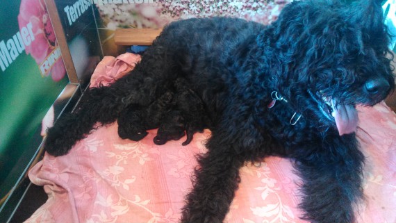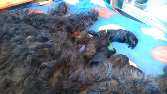 Die Kleinen sind ganz erschöpft vom Trinken Nachdem der „letzte“ Welpe zur Welt kommt, kehrt etwas Ruhe ein. Bei uns und bei Brownie, sie schläft eine kleine Runde. Danach beschließen wir, dass sie zum Gassi gehen in den Garten soll. Sie ist etwas unwillig aber wir fordern mit Nachdruck, dass sie aufsteht. Mit…