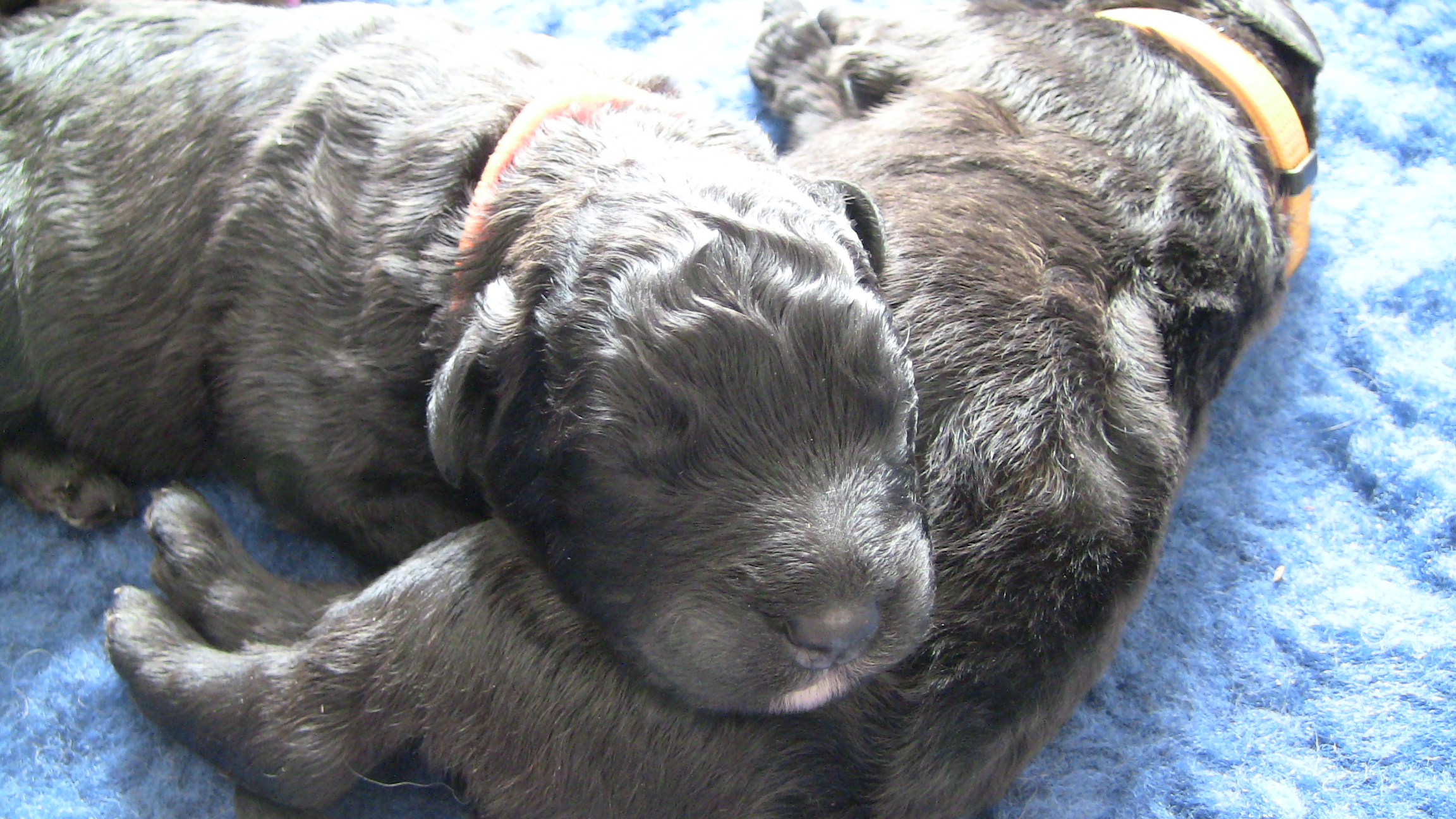 DetailsEs tut mir ja auch leid, dass wir noch keine Hunde beim Ballspielen oder Beute Jagen zeigen können. Aber so ist es nun mal, erstmal schlafen, trinken, wachsen, dann nochmal schlafen, trinken, … Deshalb hier – welch Überraschung – Clooney (Rüde, weiß) und die Callas (Hündin, gelb) nach getaner Tat (entweder Trinken oder Wachsen) beim…